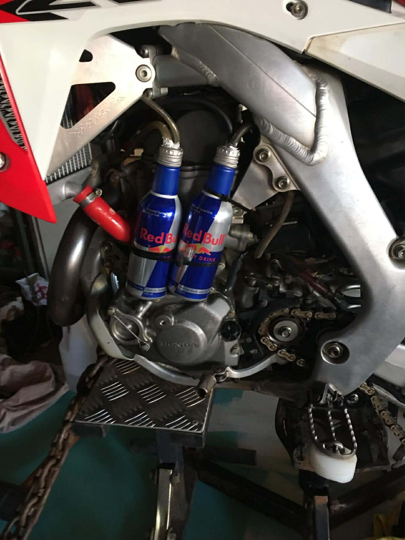 Catch cans are needed to stop any liquids overflowing from the bike and onto the track, as spilled liquids can quickly become a hazard to the other riders.